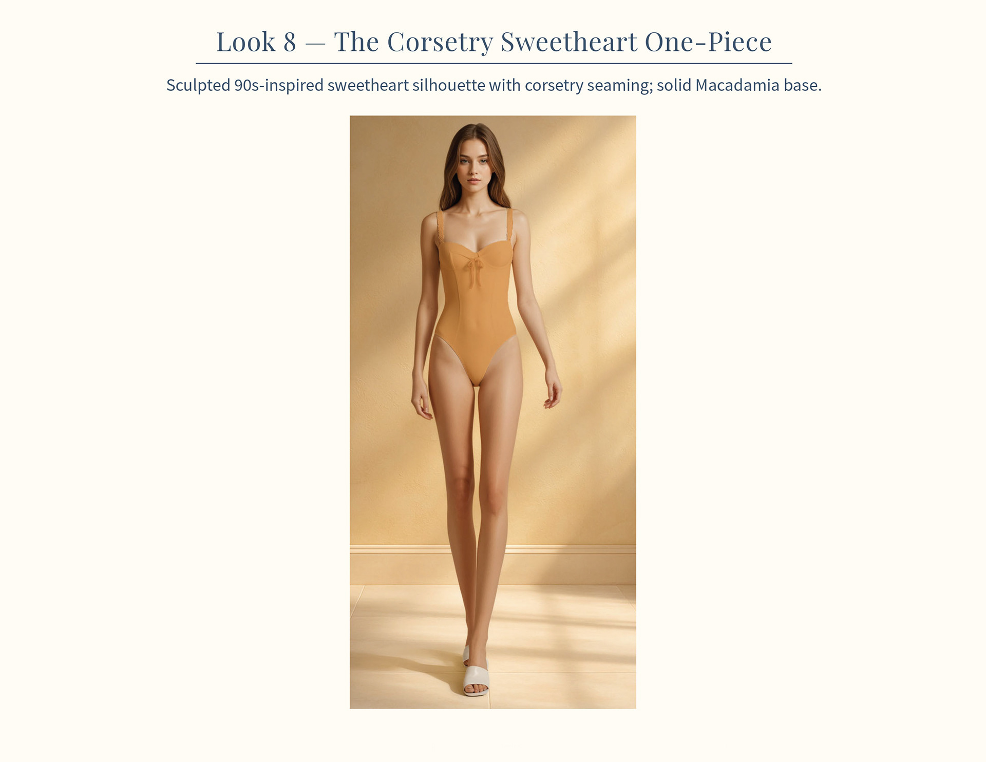 A clean, sculpted 90s silhouette where corsetry seaming defines the body with quiet precision and modern restraint.